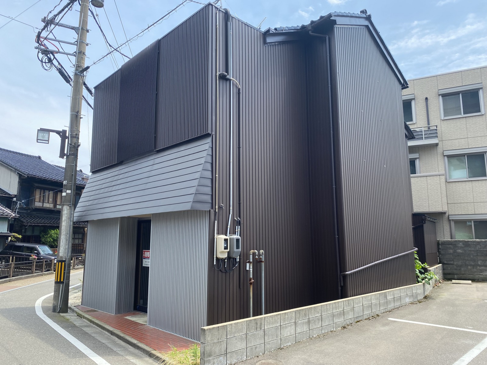 中心部にありながら建物前には用水が流れており、周辺の雰囲気も